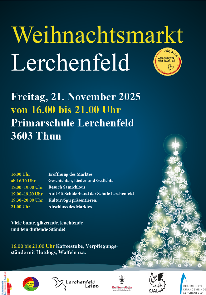 Unter Quartier-Agenda finden Sie die verschiedenen Anlässe und Aktivitäten. In Papierform hängt die Agenda im Schaukasten/am Anschlagbrett beim Quartierzentrum, beim Holzerhaus "Verein Alterswohnen Lerchenfeld", bei der Tagesschule, beim Spielplatz, der Chrüter-Wärchstatt und bei der Kirche. Gerne können Sie nachstehend den monatlichen Newsletter mit Quartier-Agenda und Infos rund ums Quartierzentrum abonnieren.